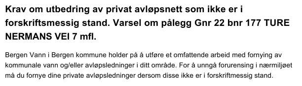 Borettslaget har mottatt følgende melding Bergen komunne: